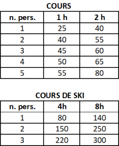 Cours de groupe: si vous êtes un groupe d’amis, nous pouvons vous organiser un cours de ski sur mesure. De plus, des visites gastronomiques et œnologiques, des visites culturelles et du wellness pourraient être planifiés avec vous dans notre fantastique vallée.